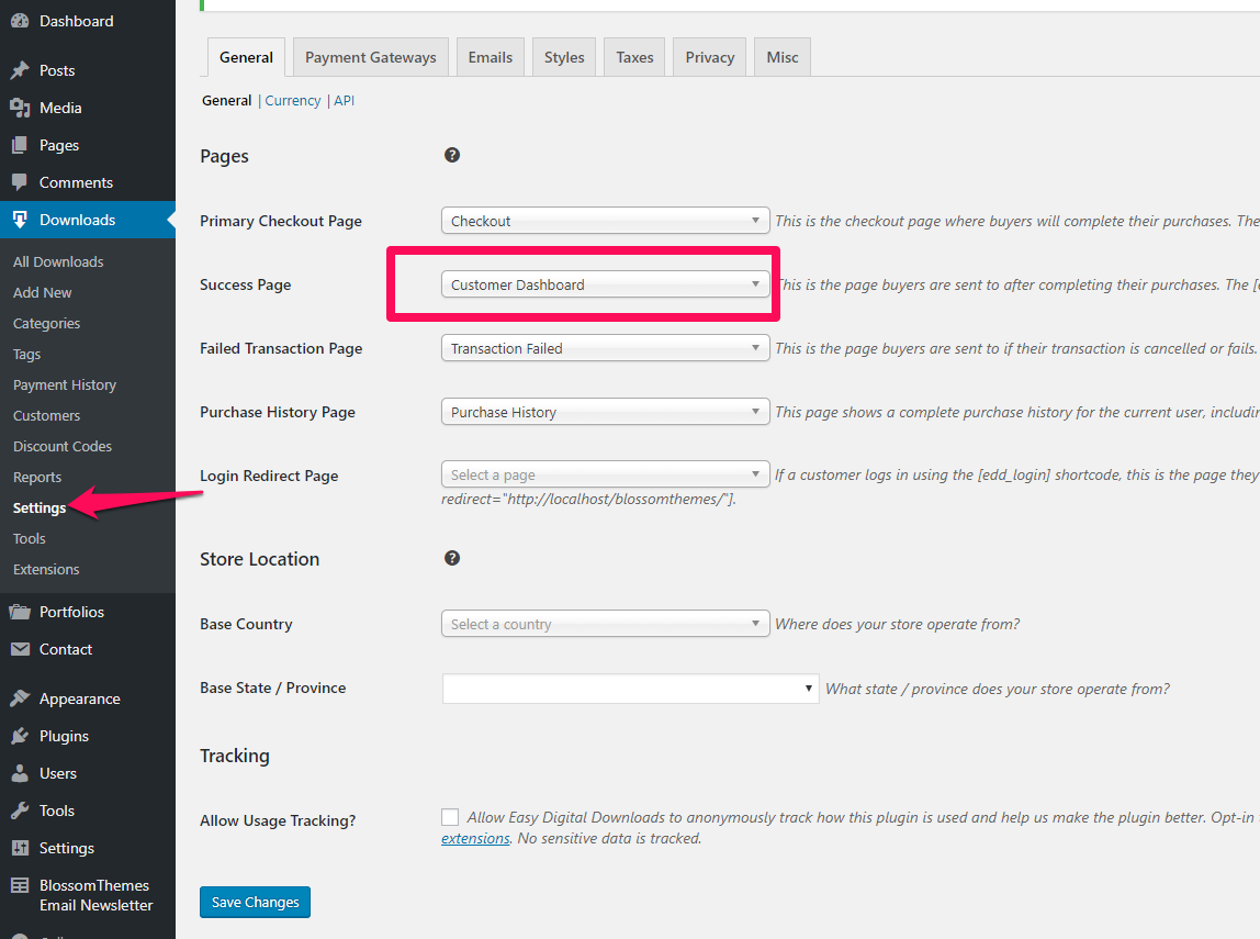 - Now, go to Downloads> Settings of Easy Digital Downloads